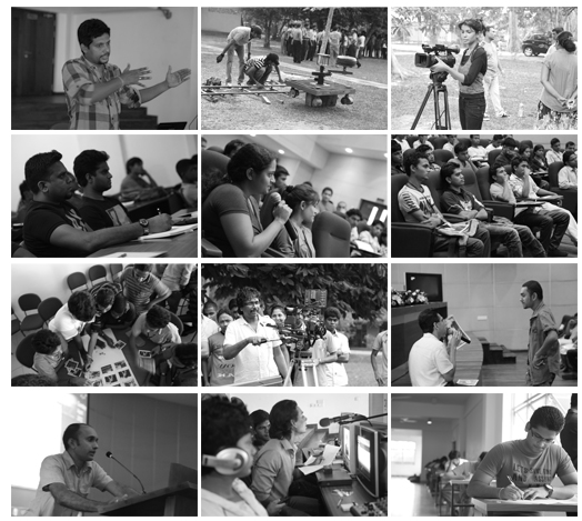 They lecture on camera, lighting, editing, multi camera production, advertisement production, music video production, 3D production, advertisement marketing, and script writing.